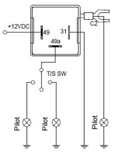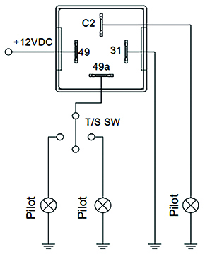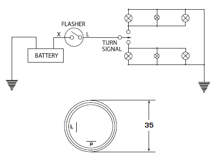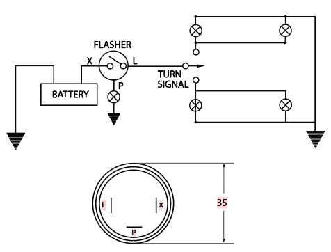 Flasher relay Separate pilot light output terminal 12V, 1~10, 21W Ø 35 x 35 mm |